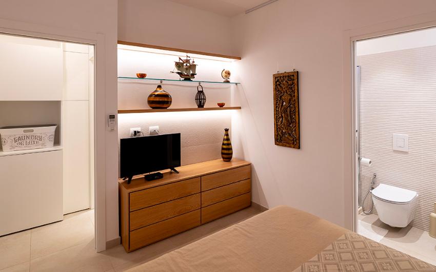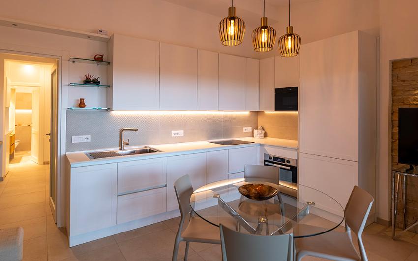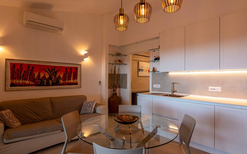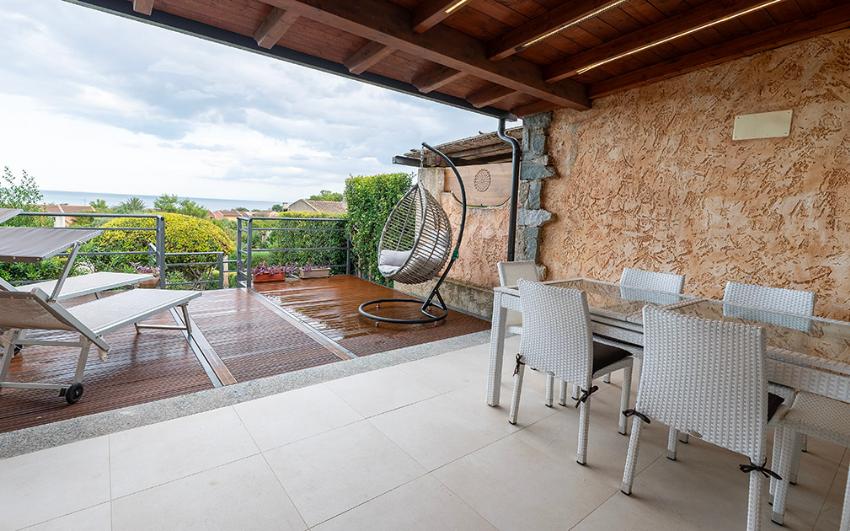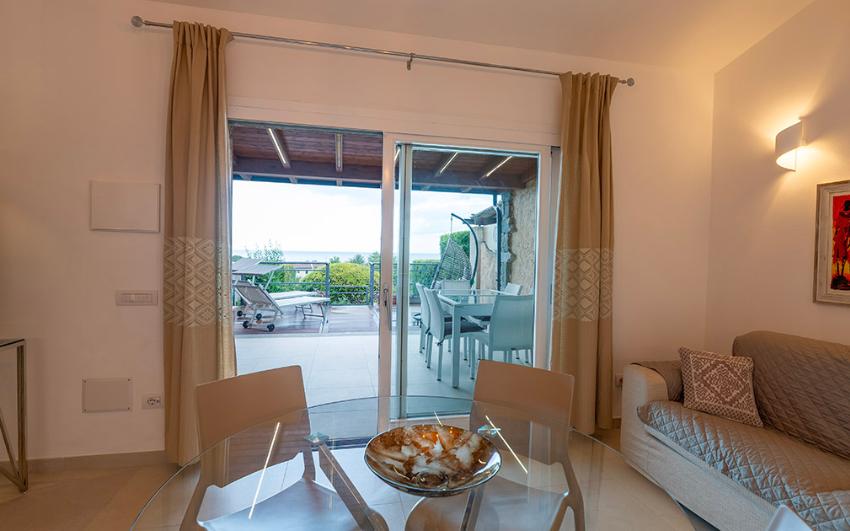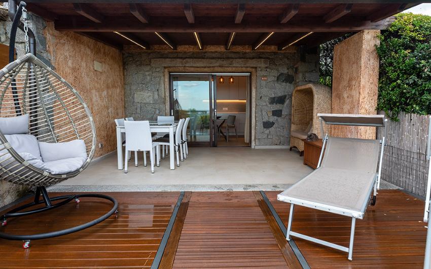 La zona exterior también cuenta con tumbonas y un comedor a la sombra, perfecto para cenas de verano.